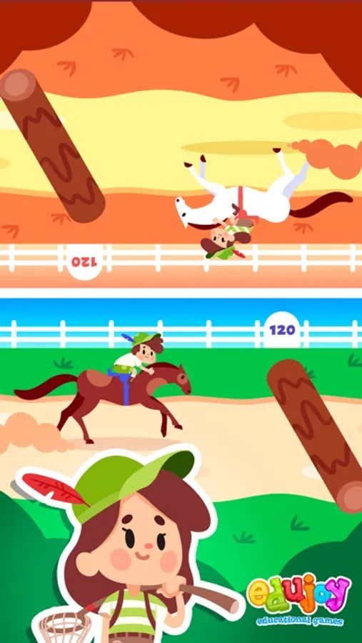 - Horse race: press the forward button to run and jump to avoid the obstacles.