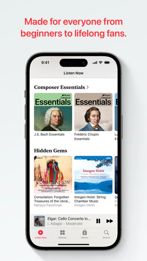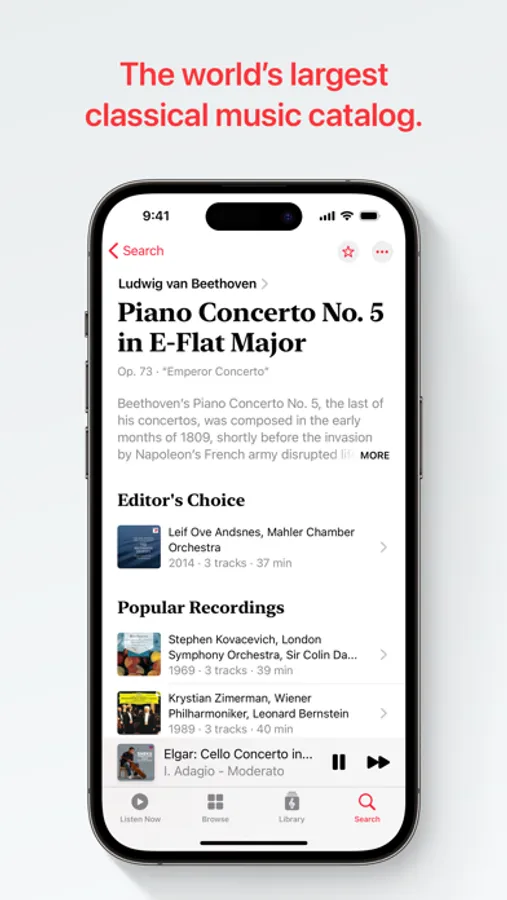Apple Music Classical also makes it easy for beginners to get acquainted with the genre thanks to hundreds of Essentials playlists, insightful composer biographies, deep-dive guides for many key works, and intuitive browsing features.