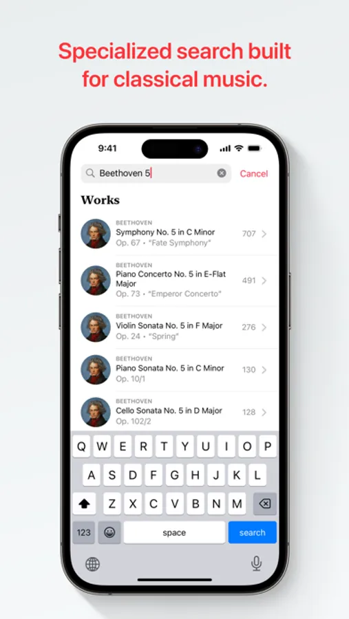 • Search by composer, work, conductor, or even catalog number, and find specific recordings instantly.