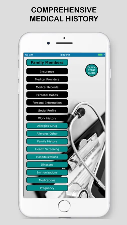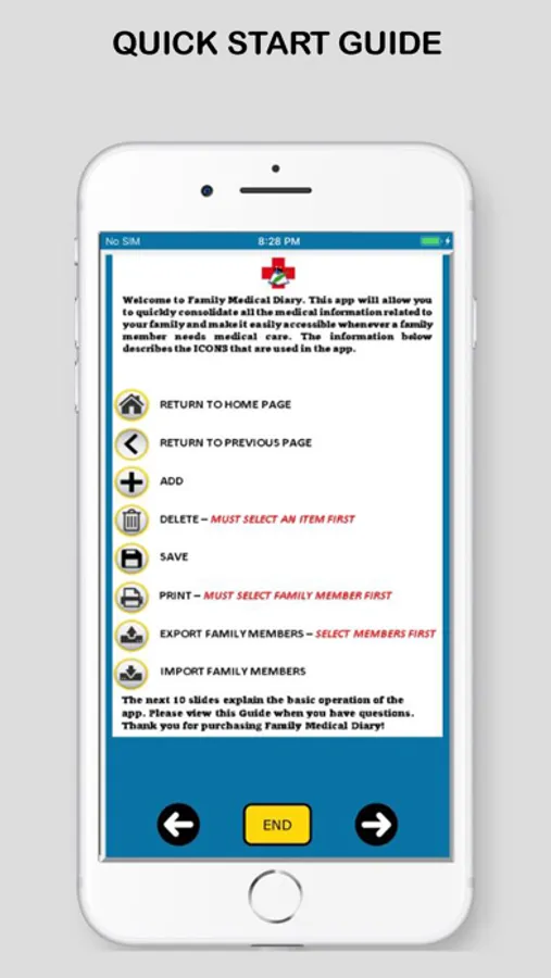 A Quick Start Guide is accessible from the Home Page. In just a few minutes, a new user can be confident and ready to use Family Medical Diary!