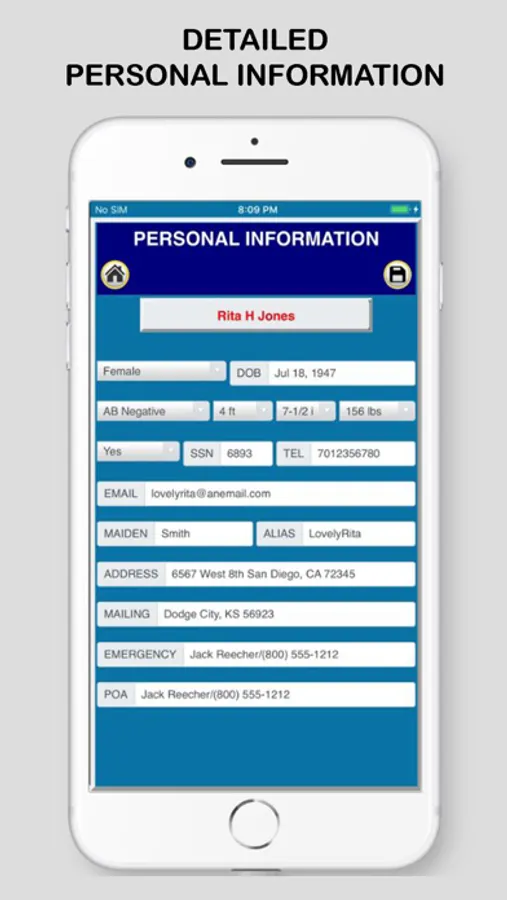It's simple! Your entire family’s information is added only once, and then, if you choose, it can be easily distributed to another family member on their phone or tablet! One person can maintain medical information for children, elderly parents, and others.