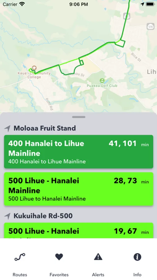 The Kauai Bus Tracker allows you to view any of our current bus locations and information about the route in real time. Using our interactive map you can view the bus stops closest to your location with expected arrival times for each stop. Sign up for mobile alerts to get notified of any service changes.