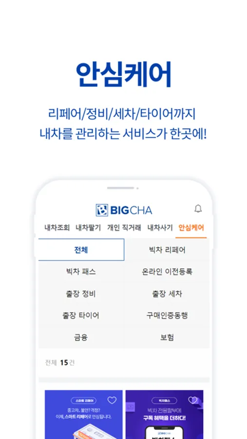 내차조회부터 판매, 구매, 빅차 안심케어까지