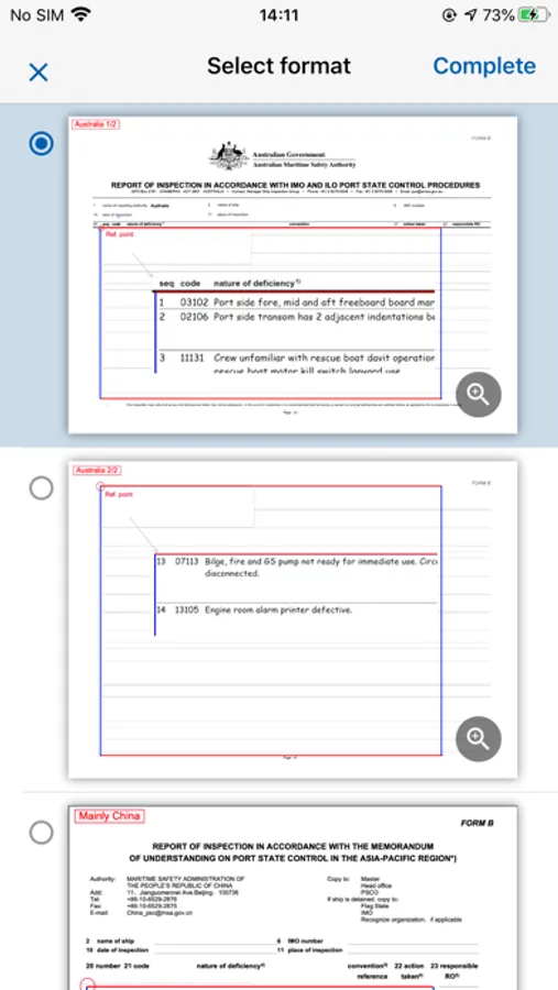 This function allows users to call up and implement pinpoint PSC checklists based on actual deficiencies recorded by the PSC in each country and port. Also, arbitrary checklists and report forms created by the user on the PC version can be accessed even in an offline environment.