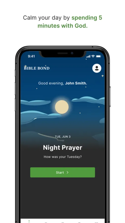 Bible Bond: Pray & Read Scripture app provides a prayer twice a day. Tell us how you feel and get a customized daily prayer from Bible verses that is bound to lift your spirits. Start and end each day with God on your mind and in your heart.