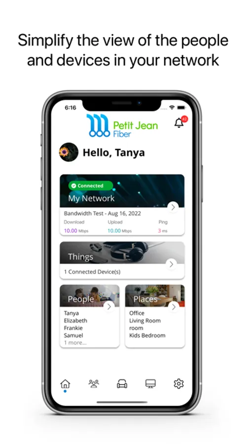 With Petit Jean Fiber, you can control your Wi-Fi anytime and from anywhere. This mobile app offers features such as parental controls, setting up guest networks, viewing all connected devices, and network security. Create individual profiles and further customize the subscriber experience.
