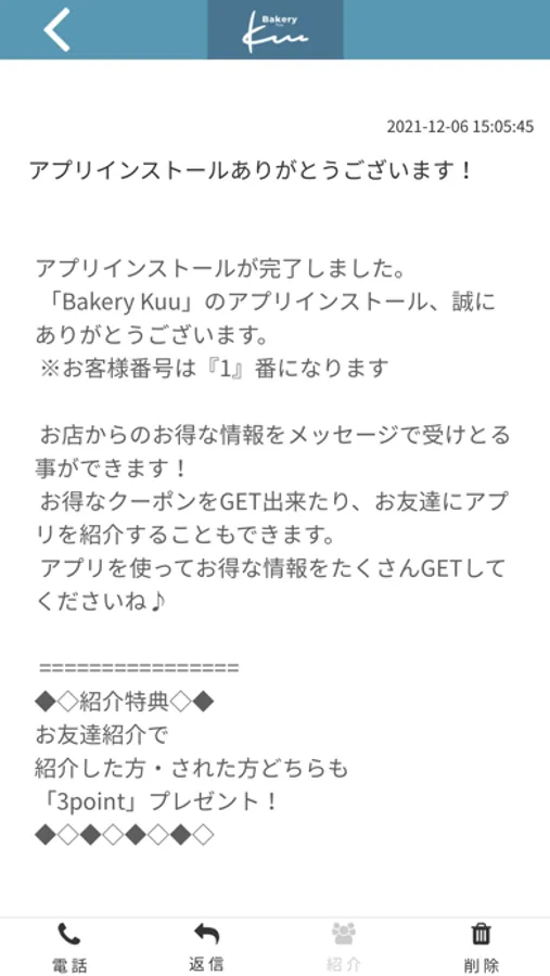 Bakery KuuのアプリをSNSを通じてお友達に紹介する事ができます。