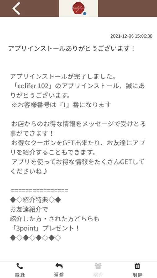 colifer102のアプリをSNSを通じてお友達に紹介する事ができます。