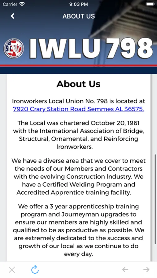 The Ironworkers Local 798 mobile app is designed to educate, engage and empower our Members. This app is to be used as a tool to better understand the benefits available to our Members working in the Industry. This app is only available to Ironworkers Local 798 Members.