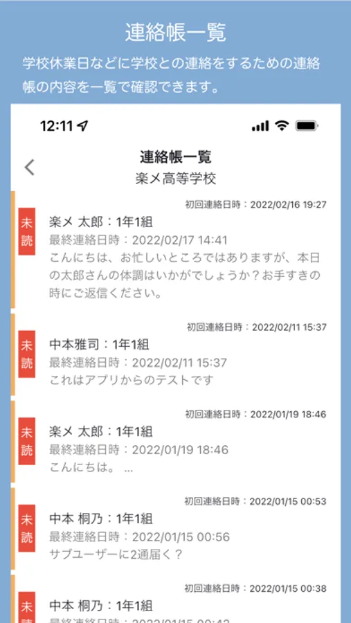 ※この機能を利用するには、学校側が連絡帳を設定していることが前提になります。なお、生徒からの登録は学校が設定を許可していない場合は利用することはできません。