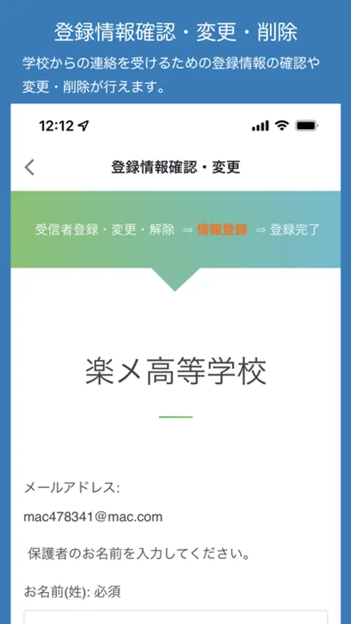 保護者や生徒は、最初に受信者登録をするだけで、これまでメールでやっていた面倒な操作が簡単に行えるようになるだけでなく、学校にとっても開封確認率の向上や、欠席・遅刻連絡、更にはスクールバスを運行する学校の場合は、バスの現在位置情報をマップで表示するなど、楽メならではの豊富な学校向け機能で教職員や保護者の負担軽減に貢献します。