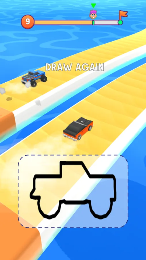Draw the most suitable vehicle shape for the road type and take speed advantage to win the race.