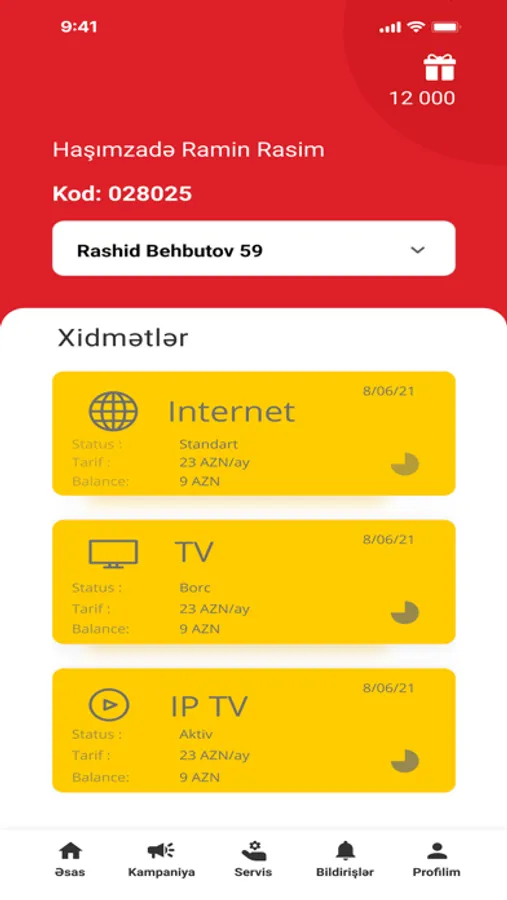 • Xidmətlərin statusuna, tariflərə və paketlərə nəzarət;