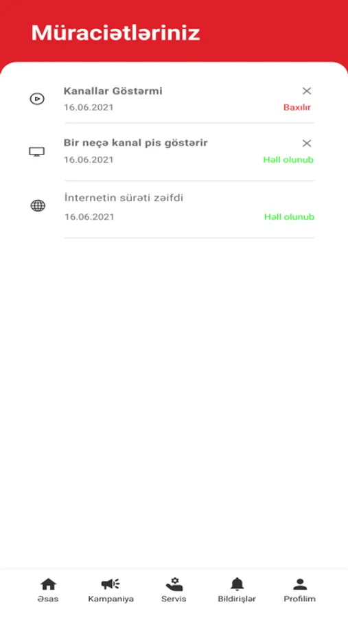 • Texniki servis və digər sorğularınızın statusunu real vaxtda nəzarət etmək imkanı;