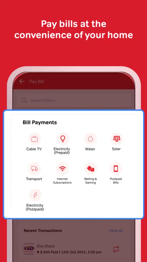 - Pay Electric, Water, Cable TV, Solar, Transport, Postpaid Bills & much more at the convenience of your home.