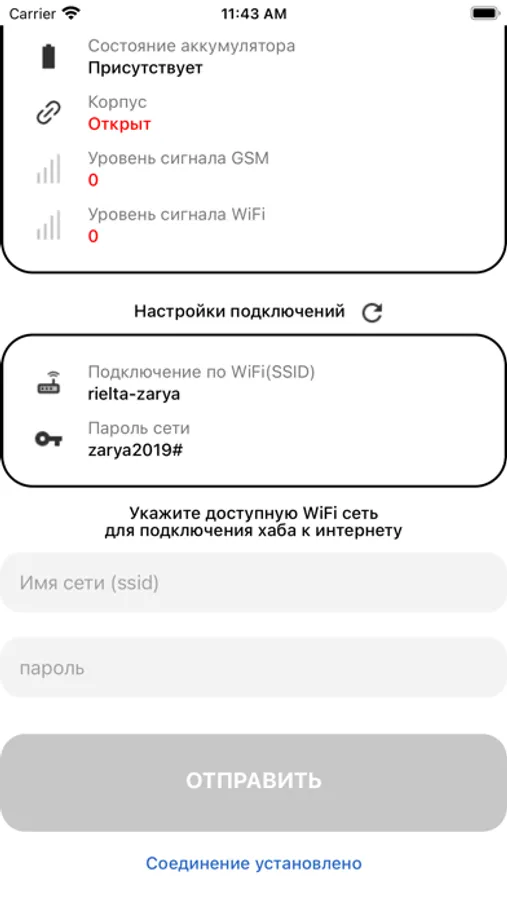 Настройка Ri-Hub через подключение к прибору, как к точке доступа wi-fi.