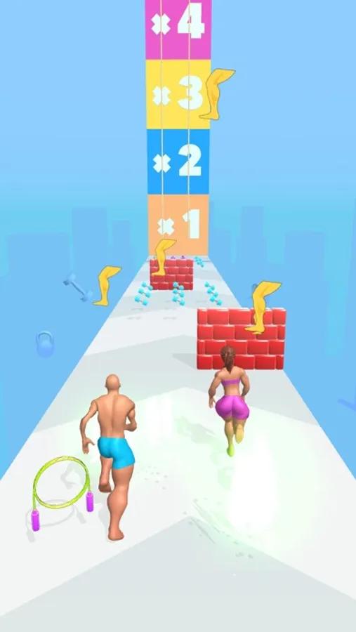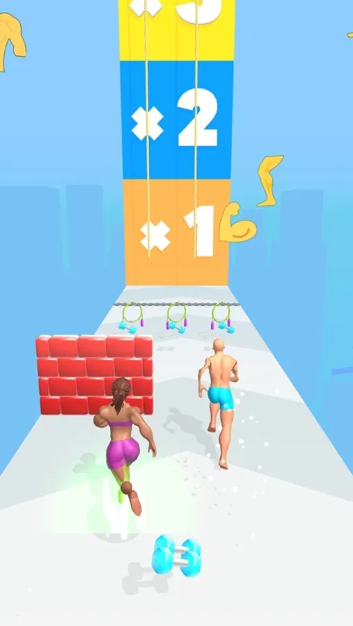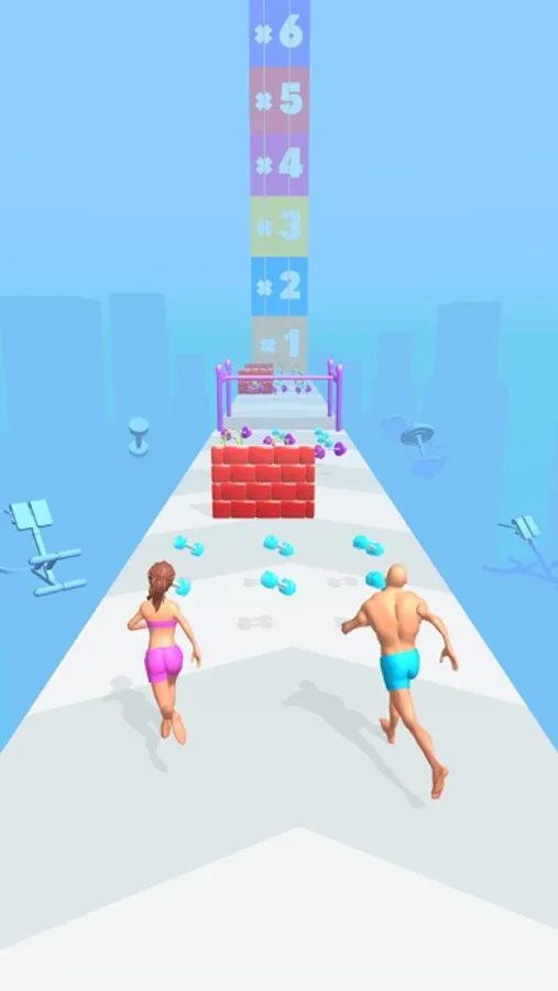 Move the couple by shifting, collect the gym items to build muscles!