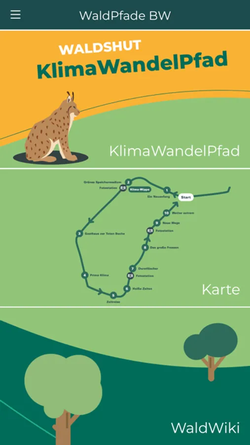 WaldPfade BW ist eine interaktive Lehrpfade-App für Baden-Württemberg. Mit dem KlimaWandelPfad im Waldshuter Stadtwald startet die App. Weitere Lehrpfade und interessante Einzelpunkte für die Waldbesucherinnen und Waldbesucher folgen.