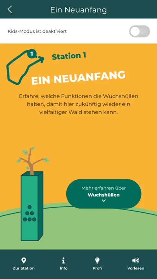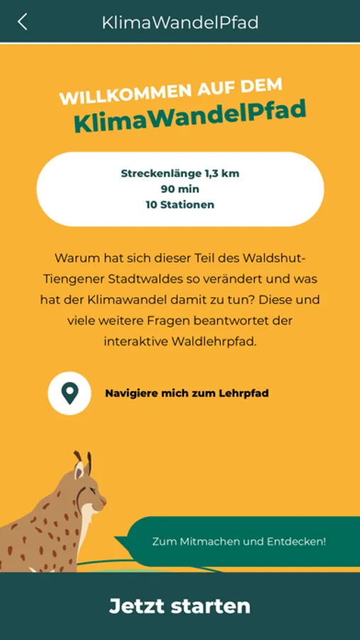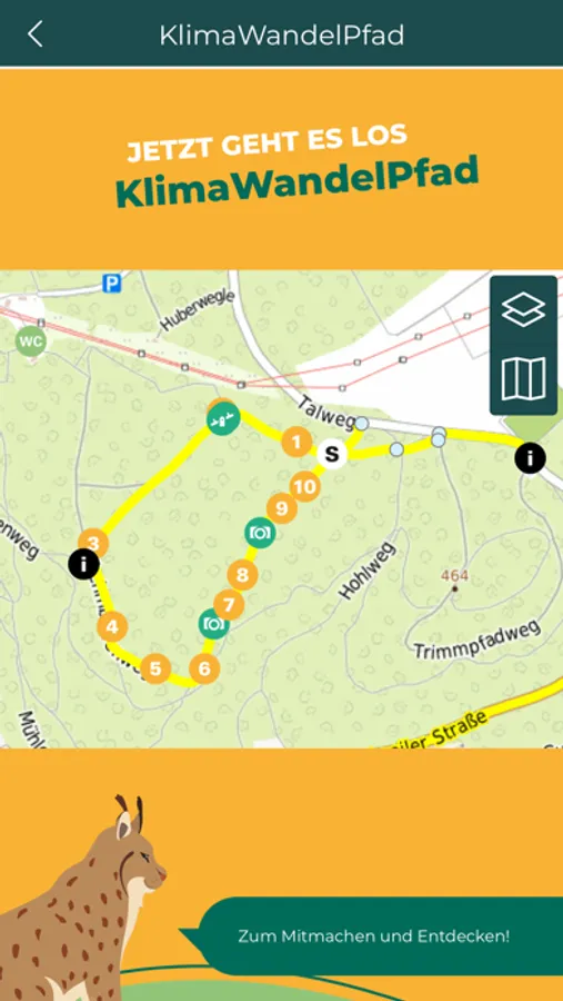 Im Kids-Modus erklärt das Lehrpfad-Maskottchen Lina Luchs die Stationen in kindgerechter Sprache und läd zum Entdecken und Mitmachen vor Ort ein. Zu jeder Station gibt es am Ende eine Quizfrage. Wer alle beantworten kann ist ein Waldprofi!