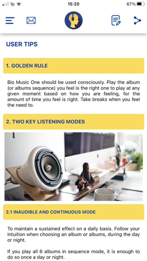 - Conscious Listening Mode: Sonic meditation in an optimized state of conscious awareness and receptivity to accelerate the liberation of stress and travel through subtle dimensions of yourself.