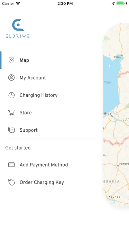 Eldrive will make your EV life in Lithuania easier. You can locate the nearest charging station, get directions to its location, start and stop your charging session all within an easy to use and familiar interface.