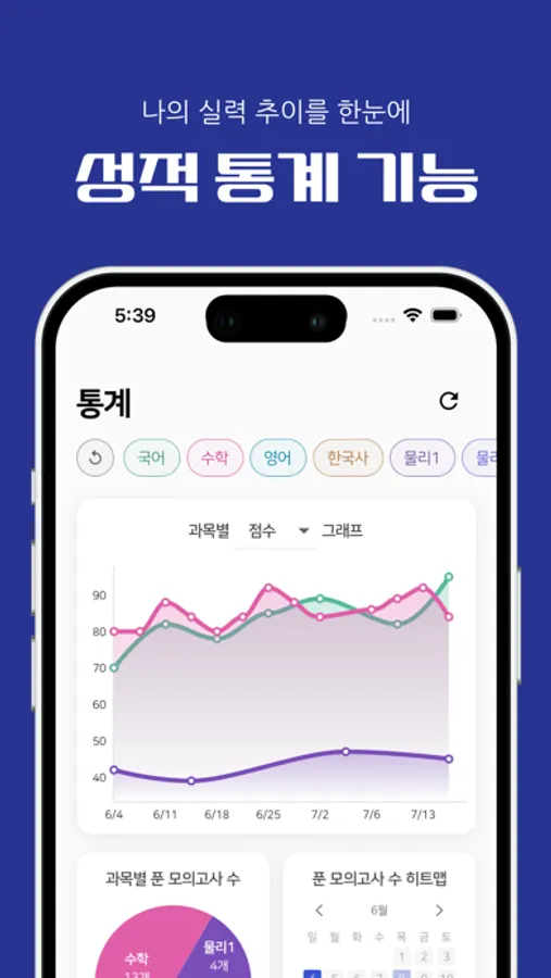 기록한 실전 모의고사들의 성적 추이를 한 눈에 파악하고, 지금까지의 실전 모의고사를 응시한 횟수와 빈도를 간편하게 관리해보세요.