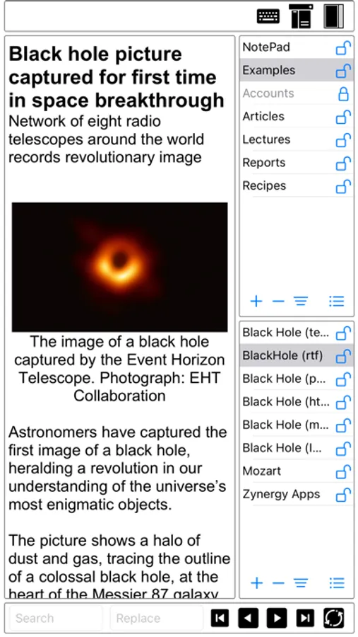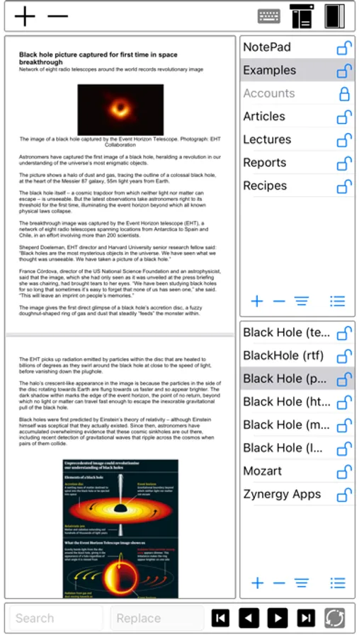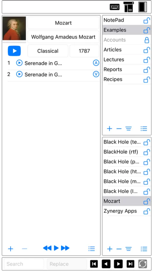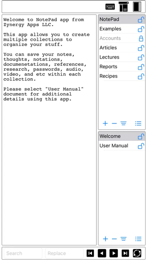 This app is used to organizes your collections of notes, letters, articles, studies, lectures, reports, research papers, documents, accounts, passwords, software serial numbers, audios, and videos materials into a single document collection. You create multiple collections of various subject matters for your personal use as well sharing with your friends and colleagues.
