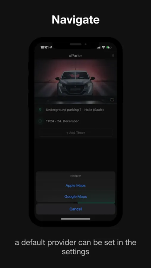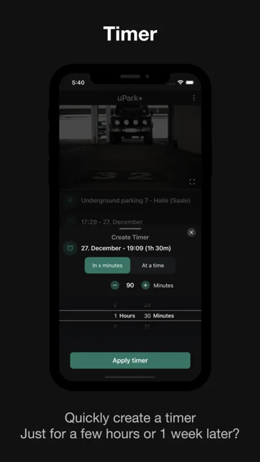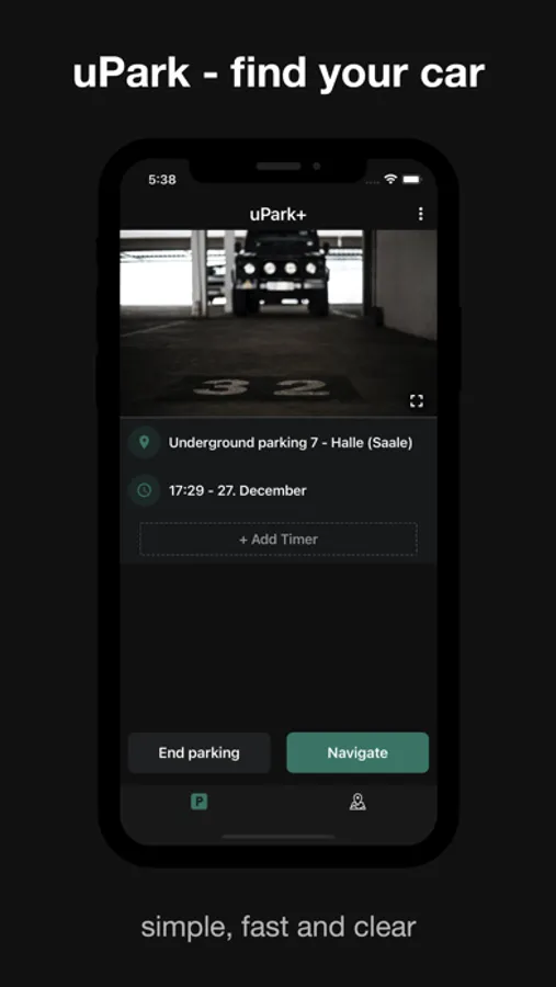 With the uPark+ app, you can easily mark your current parking spot and navigate back there later. If you are in an underground parking lot, just take a picture of the parking lot number.