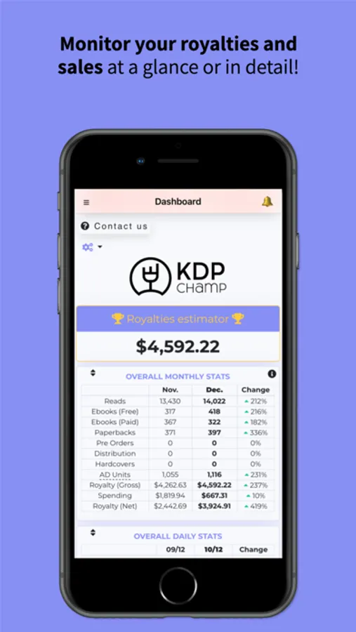 No need to calculate your net profits, KDP Champ will do that for you in your preferred currency!
