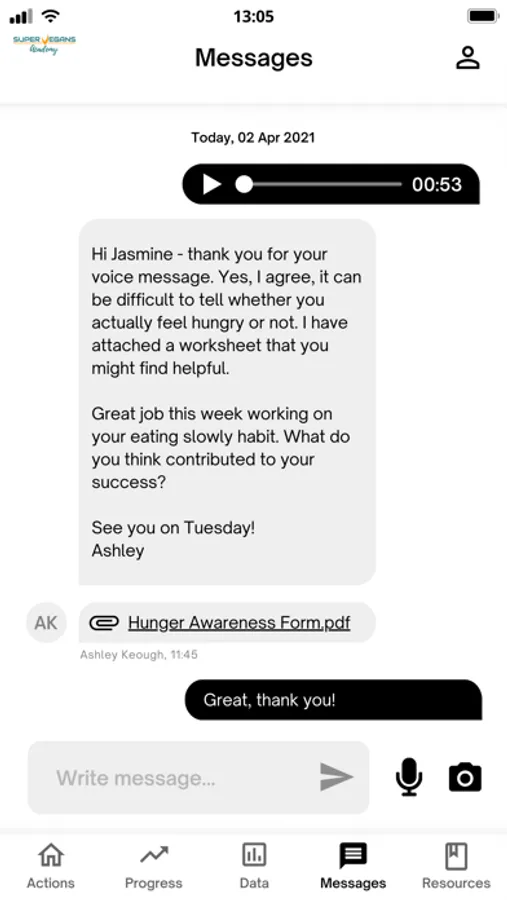 The Super Vegans Academy app allows access to HealthKit, allowing clients to automatically pull in their activity and steps data from Apple Health to their app.