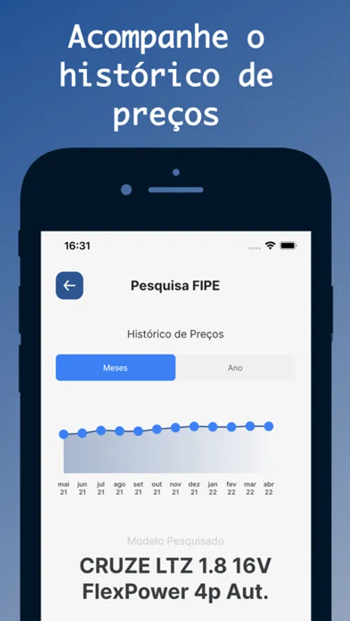 Também há uma instrumentalidade de gráfico para ficar informado a alta ou a queda do valor do veículo.
