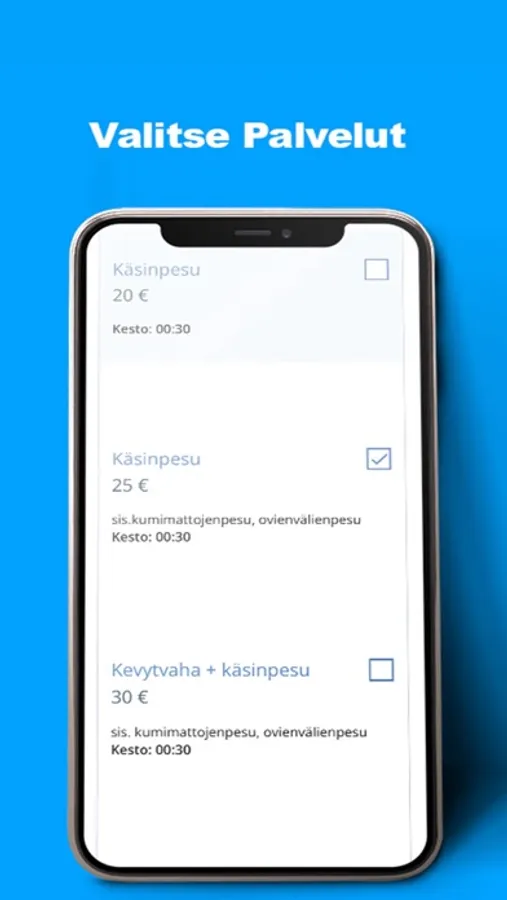 Sovelluksemme kautta voit valita haluamasi palvelut ja varata ajan.