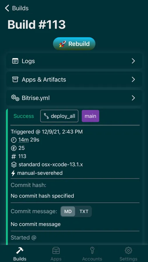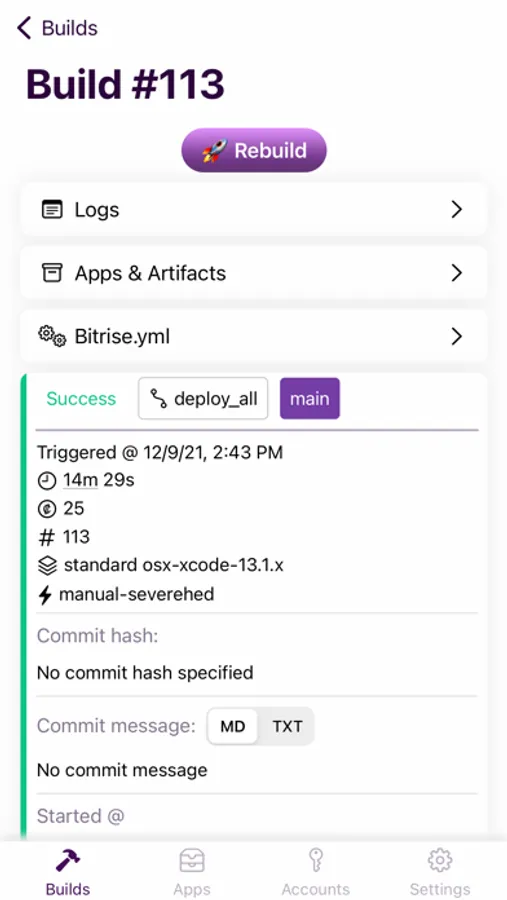 Crafted to perfectly blend with the iOS, iPadOS, and macOS platforms, Buildio provides an intuitive, streamlined interface that's as pleasing to the eyes as it is functional. With Buildio, managing your Bitrise CI builds becomes a fluid, efficient process, leaving you more time to focus on what matters most - creating fantastic software.