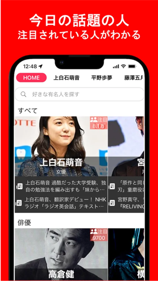 好きな著名人の情報はどのアプリよりも 多くの情報を素早く網羅します。