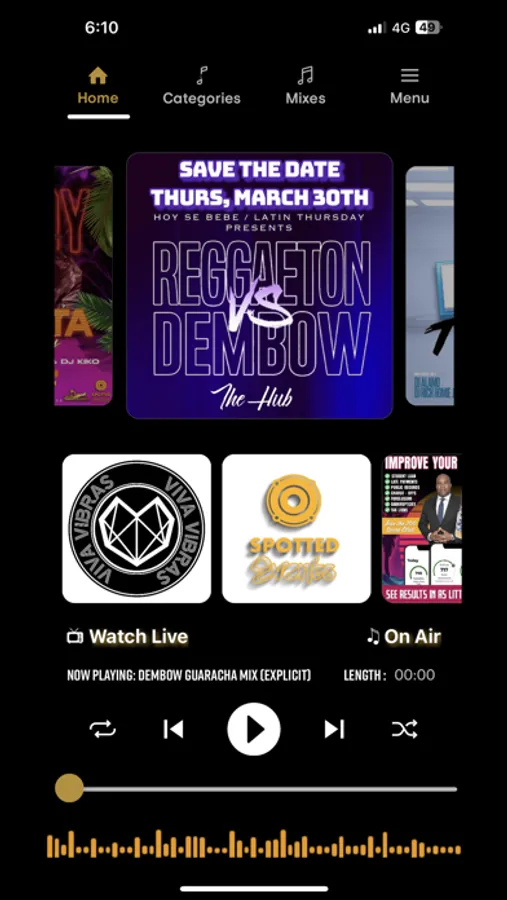 The Mix Kings App is the official application for "The Mix Kings". Featuring the best Mixes and up to date Music Hits for the public. The App offers a variety of ways to be entertained with Live Streaming DJ Shows, Live Online Radio Shows, staying connected and book our Professional DJ’s in your city. Our app also provides the locations where our DJs will be performing live at, which consists of different Venues in their local area and all around the World. In addition, there are numerous ways for Sponsors, Stores, Businesses and Artists to have a digital platform which would allow them to promote themselves through our app.