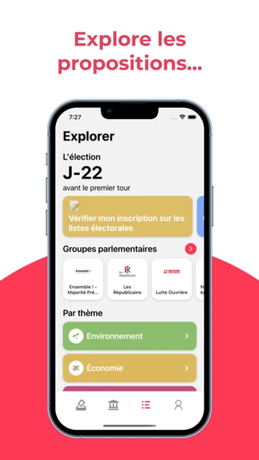 Une application GRATUITE, NEUTRE, SANS PUBLICITÉ, pour découvrir de façon ludique les propositions des groupes politiques.