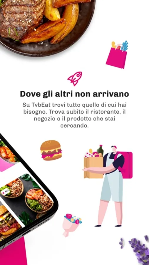 Ristoranti, Farmacie, Elettronica, Fiori, Servizi e tutto quello di cui hai bisogno! Con l’app di delivery di TvbEat puoi ordinare tutto ciò di cui hai bisogno dove vuoi, e riceverlo dove gli altri non arrivano.