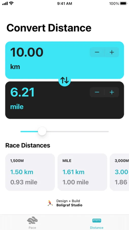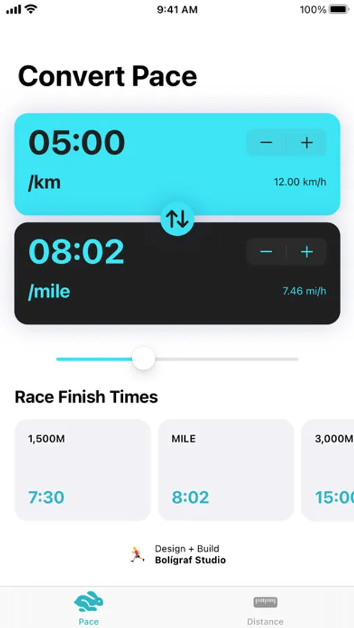 Easy Pace lets you convert your running pace between minutes per KM and minutes per mile and get finish times for popular race distances. In addition, convert distance between kilometres and miles for a custom distance as well as popular race distances.