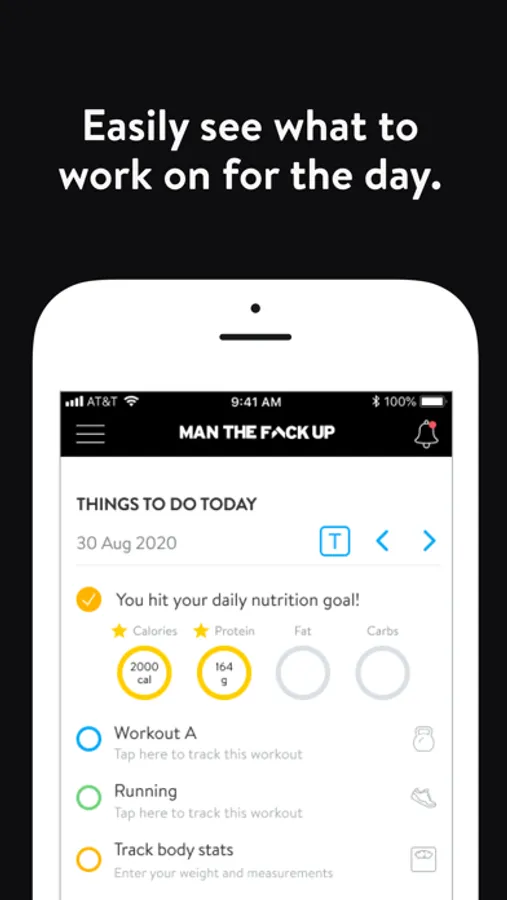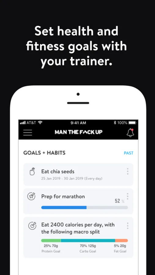The ManTheFUp App connects you and your coach in real time to ensure the best results possible on your transformation journey. All coach-client communications, check ins, workout changes, nutrition changes and progress photos will be hosted here in a clean easy to access format.