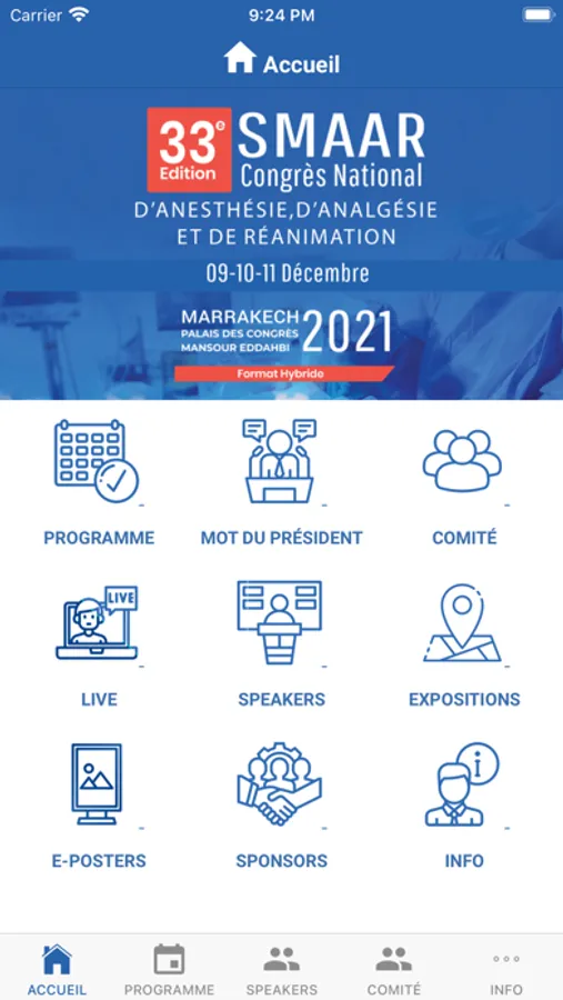 La Société Marocaine d'Anesthésie, d'Analgésie et de Réanimation (SMAAR) organise le 33ème congrès annuel les 22 / 23 / 24 décembre 2022 au Palais des Congrès Mansour Eddahbi à Marrakech