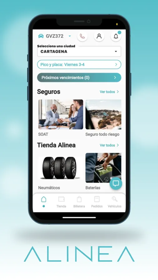 Alinea es un asistente virtual que te acompaña y facilita la gestión de tú vehículo; te notifica los vencimientos; el pico y placa de tu ciudad, te organiza tus gastos del vehículo, te permite cotizar, comparar, comprar y agendar las citas de tus vehículos y los autopartes más importantes, todo en un mismo lugar. A donde vayas Alinea te acompaña!