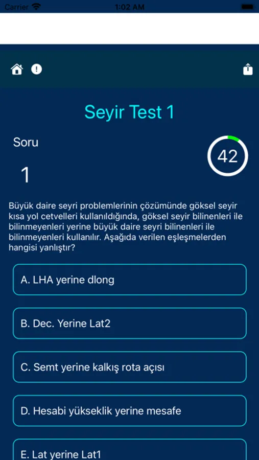 Denizcilik Sinav Uygulamasi icerigi; Ticaret gemisi kaptanlari, yat kaptanlari, guverte ve makine gorevlileri, denizcilik ogrencileri icin guverte-makine, stcw ve amator denizciler icin daha once cikmis ve 5 temel sertifika sinavinda sorulabilecek sorulardan olusan sinav sorulari bulunmaktadir. Uygulamada coktan secmeli secenekler mevcuttur ve yesil ile isaretlediginiz secenege gore sorunun dogru cevabi gorunur. İsaretlediginiz cevap dogruysa, yesil; Yanlissa, isaretlediginiz kirmizi dogru ise yesil renkte gorunecektir. Bu sayede sorunun dogru cevabini aninda ogrenebilirsiniz. Testlerimizi calisma amacli da kullanabilirsiniz.