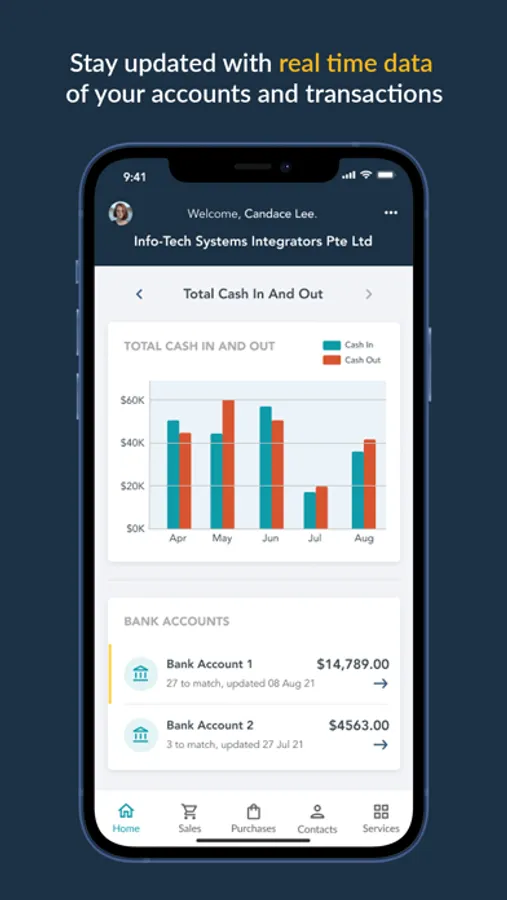 Manage accounting tasks on-the-go using Info-Tech Mobile App. Get real-time insight for your business from the mobile app dashboard, managers can also make any approvals from the app!