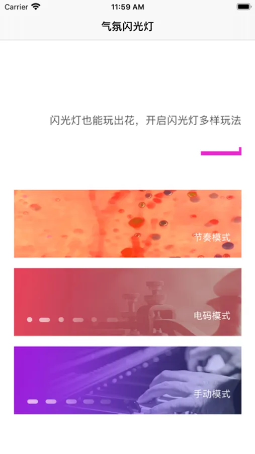一款有趣的闪光灯app,有节奏模式、电码模式、手动模式供您选择。