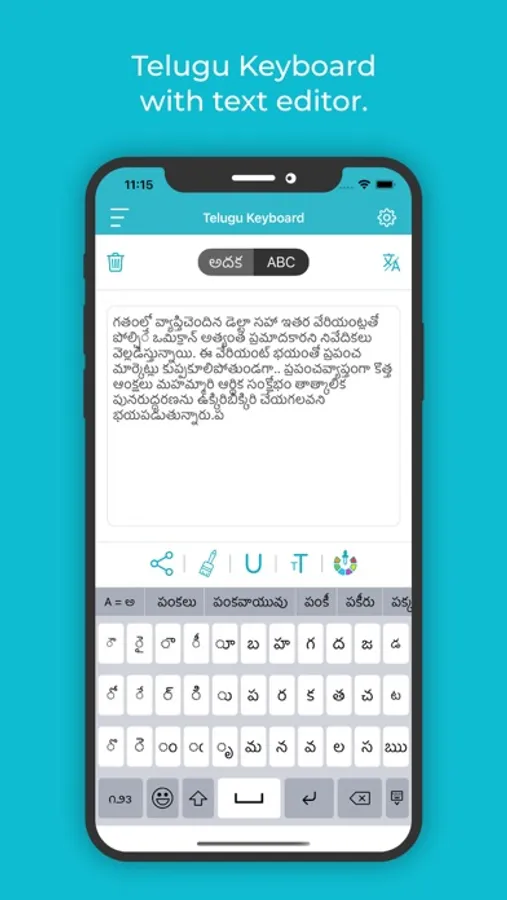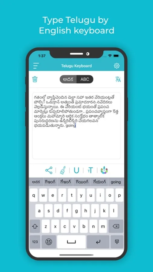 • Once you start typing, you can underline, colour or change the font of any letter to emphasise or de-emphasise it in this best Telugu Keyboard And Translator for iOS.