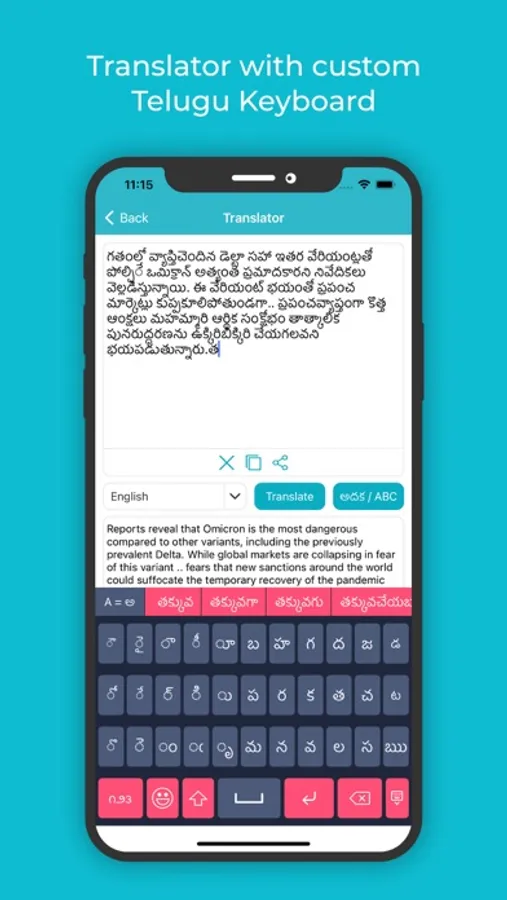 • Once you’re done with your writing in Telugu, you can use the translator feature in the best Telugu Keyboard And Translator for iOS to convert the text into any other language as well.