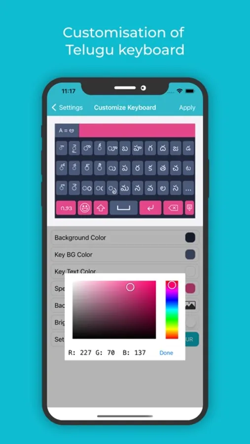 • With the Telugu keyboard for iOS, you can even set your own image in the background.
