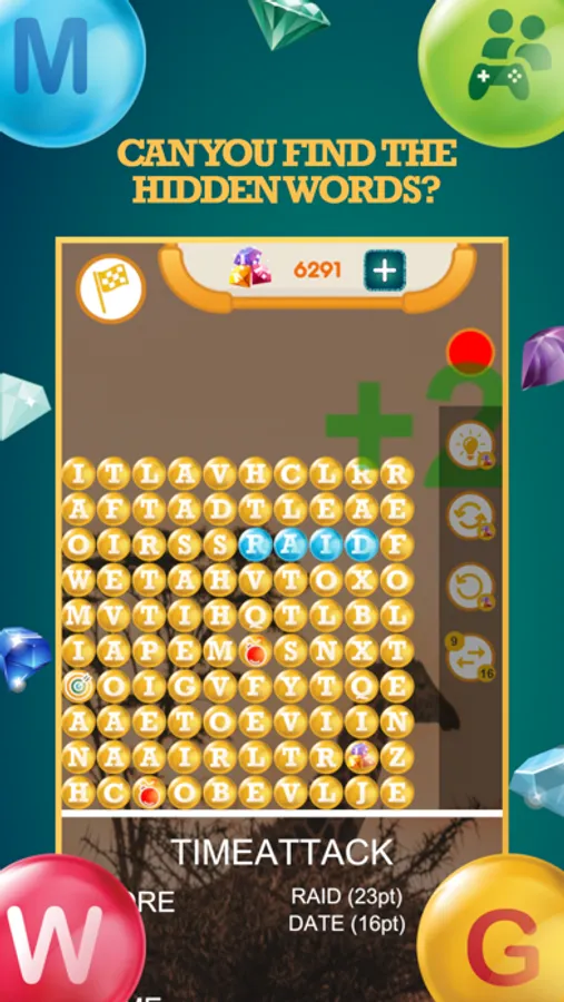 * Time Attack Mode: You need to find as many words as possible in 200 seconds.