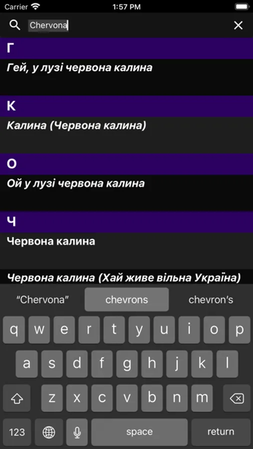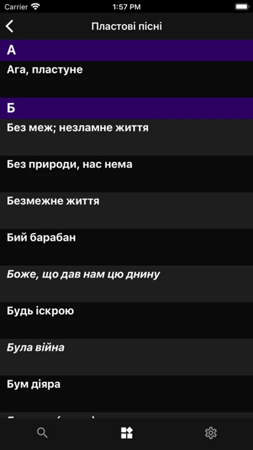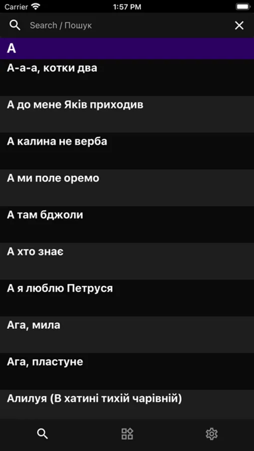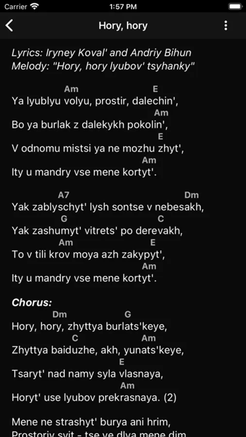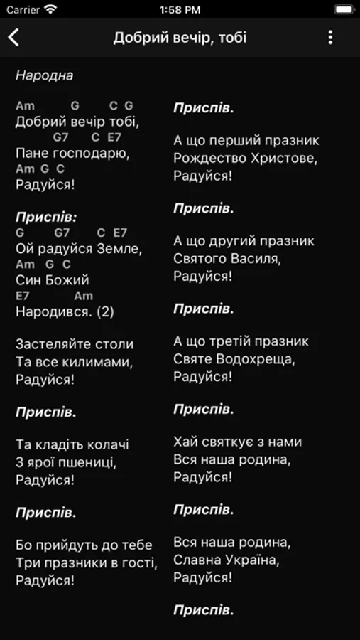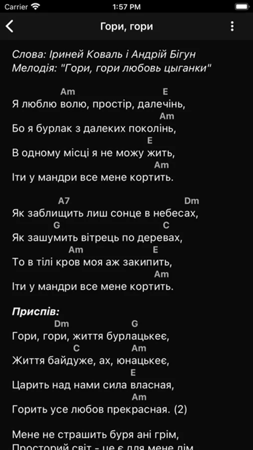This app includes lyrics and guitar chords for hundreds of songs, works offline, has a dark mode, and transposes chords into any key! It is the most comprehensive digital collection of Ukrainian zabava, Plast, CYM, and other diasporic music!