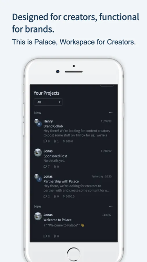 Palace Workspace is an organized home for your brand collaborations. Our "Creator Links" make it easy for brands to connect with you, while our customizable "Creator Forms" let you get the important details right away - saving you from digging through emails and social DMs or paying an agency to do it for you.